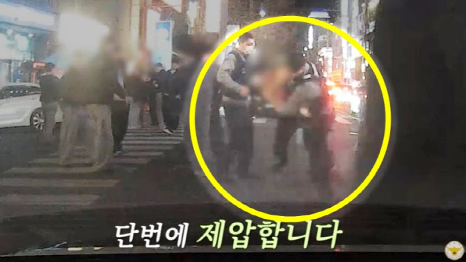 "속 시원" 옷 벗고 난동 문신男, 경찰 '업어치기'에 KO [영상]