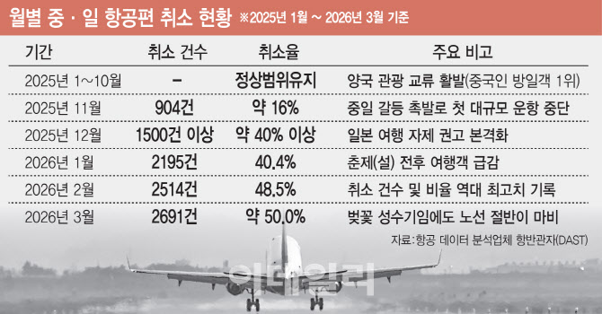 日 벚꽃 특수 실종…중·일 항공노선 취소율 50% 육박
