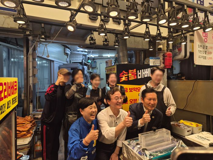 [현장] "길 막지마라"부터 "화이팅"까지…정청래·전재수 등장에 엇갈린 부산 민심